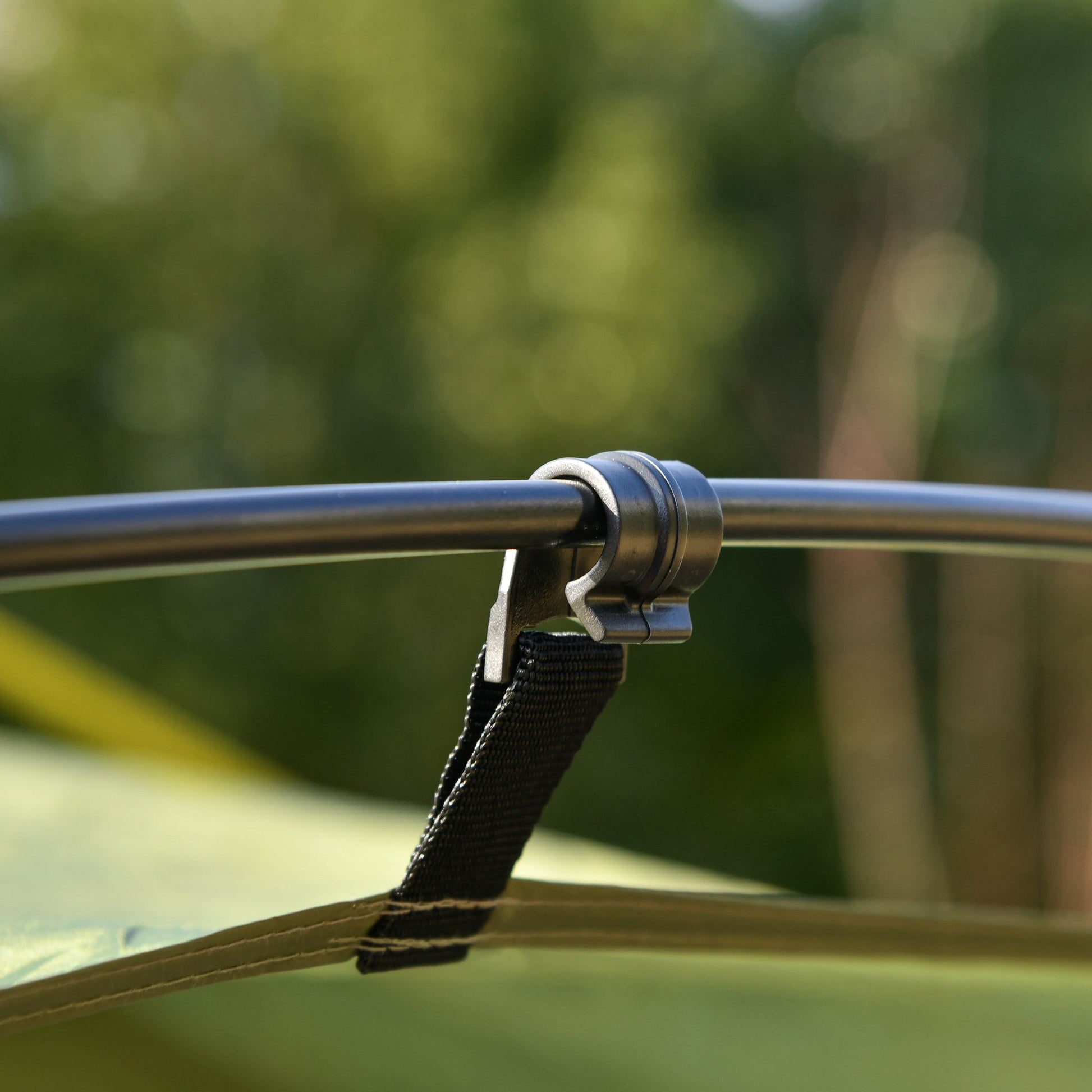 Assembly Instructions | Pop up the tent using the pre-attached poles and the button on the apex. |