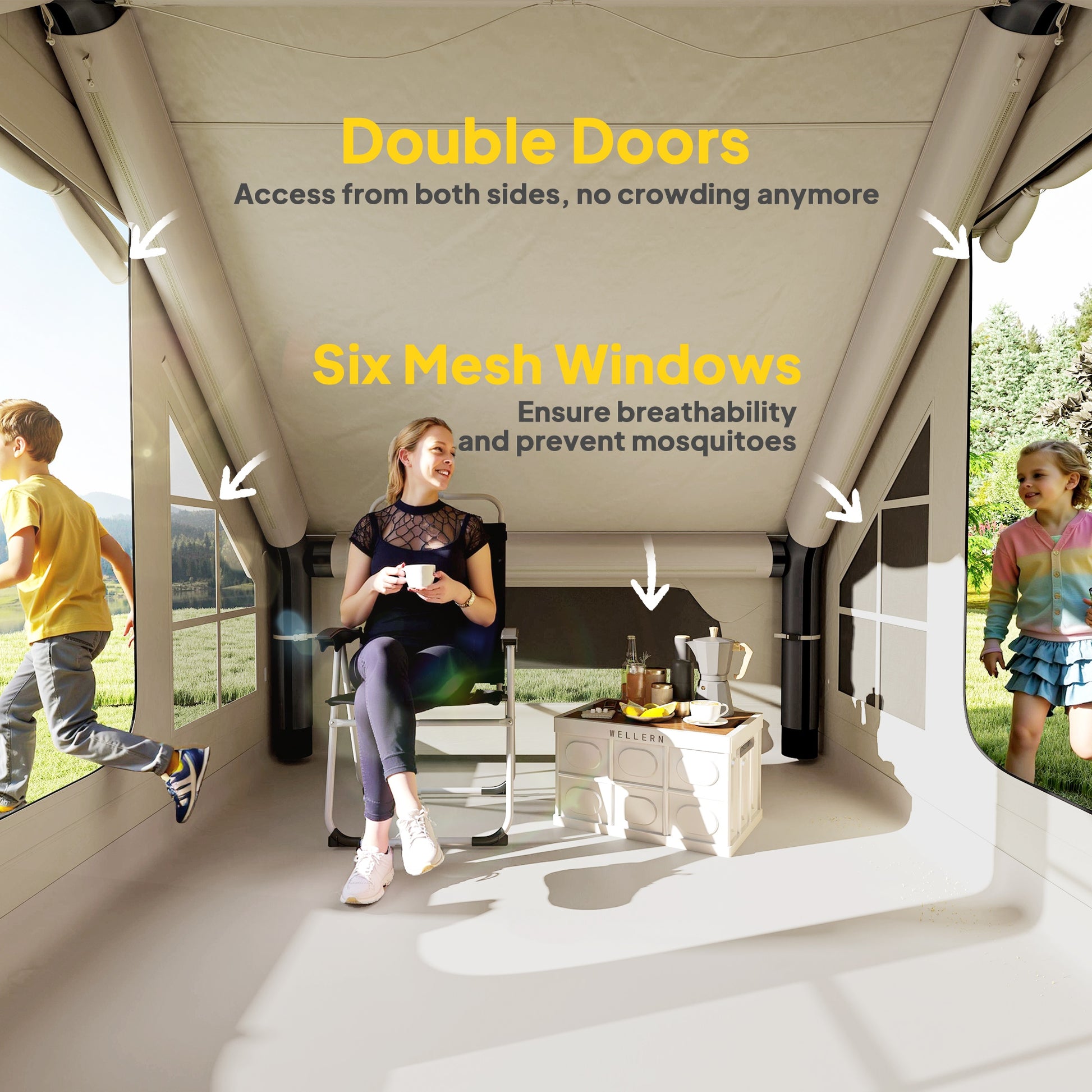 - Quick setup and portable: Inflate this air tent in just two minutes with the included pump. It comes with a convenient carry bag for easy transport and storage, saving you time and effort so you can quickly enjoy the outdoors.